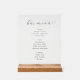 This elegant acrylic sign features a chic bar menu design, perfect for adding sophistication to any establishment. The minimalist layout showcases a refined color palette of soft grays and whites, with the text elegantly arranged in an inviting cursive font. It lists various beverage options including beer, wine, and spirits, making it both functional and stylish. Crafted on a wooden base, this sign exudes a modern yet timeless vibe, ideal for enhancing the ambiance of bars or restaurants.
