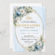 Refined Dusty Blue Gold Greenery Quince 15 Invitation