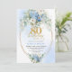 Refined Dusty Blue Peonies Gold Frame 80 Birthday Invitation