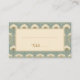 This elegant wedding place card features a delicate floral pattern with soft pastel hues, creating an enchanting and romantic atmosphere. The primary motifs are large white flowers set against a soothing teal background, complemented by subtle gold accents that add a touch of sophistication. The typography is refined and cursive, enhancing the overall charm and grace of the design. Perfect for a classic or vintage-inspired wedding, this place card exudes timeless beauty and will beautifully adorn your reception tables, inviting guests to partake in a memorable celebration.