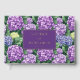 This elegant wedding guest book features a vibrant floral design with lush hydrangeas in shades of purple and green, creating a romantic and sophisticated atmosphere. The central panel is adorned with classic typography on a rich purple background, adding an air of timeless charm to the overall look. Perfect for capturing heartfelt messages from guests, this design exudes warmth and celebration, making it ideal for a memorable wedding day. Its customizable text area allows for personalization while maintaining its refined aesthetic appeal.