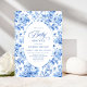 Refined Royal Blue Toile de Jouy Floral Baby Showe Invitation