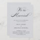 This elegant, stylish post-wedding brunch invitation features lots of modern, swirly black calligraphy on a soft grey background.