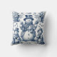 Refined Toile Blue Snowman Pattern Cushion