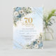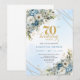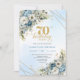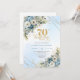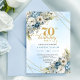 Celebrate a milestone in style with this elegant 70th birthday invitation featuring watercolor dusty blue and white flowers, soft eucalyptus greenery, and a shimmering gold frame. Designed in chic boho style with refined script lettering, this floral invitation is perfect for a classy 70th birthday party. Ideal for formal, garden, or luxury celebrations with a timeless, sophisticated touch.