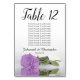 Reflecting Lilac Purple Rose Seating Chart Wedding Table Number