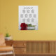 This wedding seating chart is beautiful, classy, elegant and stylish. It features a long stemmed red rose reflecting in water with waves and ripples. The title reads "please find your table" in fancy script calligraphy. There is space for the names of the couple and wedding date. This 10 table seating chart has table assignments for 100 guests - 10 people per table.