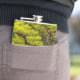 The flask itself is fine. It’s a cheap flask, obviously bought in bulk, however am prepared to overlook that. Given that it is a personalized item, I would have liked to have seen gift boxing instead of the generic packaging. Terrible printing, and/or quality. It’s a cheap, tacky vinyl. It is not cut straight and is also applied in a way that it is overhanging the bottom, causing the glue to catch on items and it will eventually roll and tear, damaging the wrap.