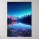 Step into a world where time stands still and the chaos of modern life is left far behind. This digital art piece beckons you to a place of pristine beauty, where a tranquil mountain lake shimmers amidst rolling hills, surrounded by the majesty of nature. The delicate purple flowers in the foreground seem to dance in the gentle breeze, their fragility a poignant reminder of the fleeting nature of life.