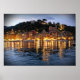 Add a touch of those romantic evenings in Portofino, Italia with this shot of the café lights reflecting on the ripples of the classic harbour village.
