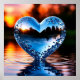 Reflective Blue Heart in Water at Sunset Poster
