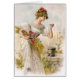 Young lady at a well taking a drink. She holds a sheaf of grain and flowers under her arm. Fine Art gifts for Vintage and Nostalgia lovers.