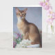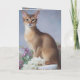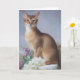 Celebrate any occasion with the quiet grace of this Abyssinian cat. Set against a soft, muted background and surrounded by delicate blooms, this elegant card conveys sophistication and charm.