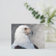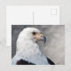 Postcard featuring a close-up of the regal american bald eagle in profile. You can see the details of his dark brown and white feathers, yellow hooked beak, and sharp piercing eyes. As the emblem of the United States, this is a great card for patriots, as well as bird watchers and nature lovers. Photo taken in Los Angeles, California.