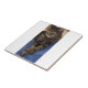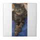 Small ceramic photo tile for use as a trivet with regal Dave a silver tabby pet cat on it.