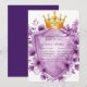 This exquisite wedding invitation template features a royal golden crown adorned with amethyst jewels, nestled above a heraldic shield framed in gold. Surrounding the design are lush lavender and violet peonies, creating a luxurious, vintage floral motif. Perfect for romantic, royal-themed weddings or elegant celebrations with a touch of nobility and floral charm. The blank shield provides space for custom names, dates, or messages.