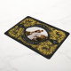 This photo save the date features intricate hand-drawn ornamental foliage that surrounds the text and photo.