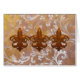 Regal Fleurs is a lovely composition featuring three metallic-look Fleurs de Lis against a background of harlequin design, metallic-look wallpaper, also with Fleurs de Lis accents. Between these two layers is an overlay of softly shining, silvery metallic swirls. Available in six luscious colours!