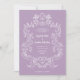 This elegant and luxe wedding invitation features a vintage line art frame with ornate baroque style. The white illustration sits on a lavender purple background. Modern script calligraphy and classic text, along with your initials or monogram, make this a classy yet up-to-date contemporary choice for your wedding.
