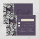 This RSVP card showcases a calming lilac backdrop adorned with delicate silver and soft gray floral illustrations on the left side, creating a natural, sophisticated vibe. The florals are framed by a slim metallic silver border, adding a sleek, polished finish. The overall design blends rustic charm with modern elegance, combining soft, natural tones with a refined, clean esthetic. Ideal for weddings with a focus on understated elegance and nature-inspired themes.