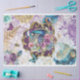 Teal and purple Victorian style decoupage paper filled with butterflies, peacock feathers and a whimsical elegant peacock. Hints of gold, checks and damask and florals.