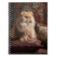 This elegant notebook cover showcases a majestic long-haired Persian cat seated proudly on a richly embroidered cushion. Behind it, intricate tapestry patterns add to the luxurious, royal ambiance. Perfect for cat lovers, art enthusiasts, or anyone who appreciates sophisticated and timeless stationery.