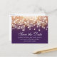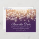 Save the Date postcard featuring gold and white Bokeh lights.