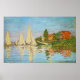 Regatta at Argenteuil by Claude Monet is a beautiful impressionism painting of sailboats, a red boathouse and the blue water of the River Seine