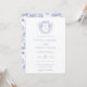 Regency Blue Monogram Crest, wedding invitation. Vintage inspired Regency-Era baroque line art monogram crest. Features, an elegant blue typography design style mix of script and bold type. Chinoiserie style garden pattern backing.