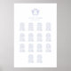 Regency Blue Ornamental Crest monogram, 14 table wedding seating chart. Vintage inspired baroque crest in Regency Blue. Features, elegant and classy blue typography design style mix of script and bold type.
