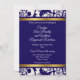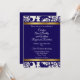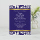 Elegant dark regency blue wedding invitation, with a damask design, along the top and bottom, with a gold tone border. Personalise the white text to suit your wedding needs.