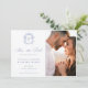 Regency Blue Monogram Crest Wedding Photo Save The Date