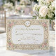 Set the tone for a timeless celebration with this vintage-inspired design. Perfect for requesting the pleasure of your guests' company at a formal affair.This design features a warm, cream-colored background layered with a printed antique paper texture to evoke a sense of history. The layout is framed by a symmetrical border of soft blush pink roses and sage green leaves, intertwined with faux gold filigree scrolls. A delicate line-drawing of a cherub rests at the bottom center, while an oval frame at the top showcases custom initials. The typography blends a traditional serif font with sweeping cursive script for a refined finish.This is a flat printed image with a Faux Gold Foil and Parchment effect, not actual raised material or metal.