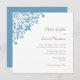 Chic and elegant regency french blue fleur de lis pattern wedding invitation design. Detailed fleur de lis corner pattern in french blue. Customise with your names and your wedding information in dark taupe lettering.