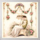 Step into a world of timeless elegance with this beautifully restored vintage-inspired illustration. Featuring a graceful woman reading beneath a delicate parasol, surrounded by cascading rose garlands and soft botanical details, this design evokes the romance and refinement of the Regency era.