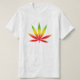 © Sunny Mars Designs. Green Yellow & Red Reggae Rasta Leaf Silhouette Tees – Cool custom Jamaican men's clothing with a silhouette of a Rastafarian leaf in green, yellow and red Jamaica colours.
