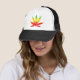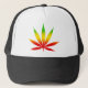 Rasta Leaf © Sunny Mars Designs. Cool customizable Jamaican Reggae Rasta Leaf custom truckers hat or cap with a silhouette of a Rastafarian leaf in green, yellow and red Jamaica colors.