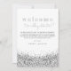 This wedding welcome letter and timeline features a glittery faux silver sequins and a fun glam layout. Easily edit *most* wording on this timeline. Click 'click to customise further' in the personalisation section to open up the full editor. To add new icons, visit https://www.svgrepo.com/ and search the icon you need. Download as a .svg and then drag and drop it into the Zazzle editor. Change the colour of the icon on the right-hand side of the editor.