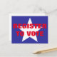 Jump start your campaign's get out the vote efforts with these red white and blue postcards. You can customise the text on these postcards if needed. A lone white star is on a blue background. The text (Shown: Register to vote) is bright red.