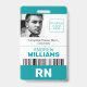 Registered Nurse ID Barcode Teal White Logo Photo Badge
