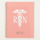 Stay organised with this Registered Nurse Medical Coral Pink Personalised Planner. It is designed with a pink background on the front and back. The front has a white caduceus symbol and "RN" on the centre. Name is in light grey skinny lettering across the lower front. CLICK PERSONALIZE TEMPLATE OPTION AND ENTER NAME.