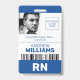 Registered Nurse RN ID Blue and White Logo Photo Badge