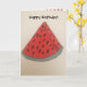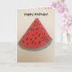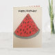 This is a happy birthday greeting card with a watermelon on the front and in the inside it has a boarder of watermelons. On the left side of the card it is blank and on the right side it says You're one in a melon. On the back it says SK_creations and "Artistically Random."