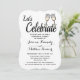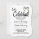 Cheers! Add some bubbly to your wedding rehearsal dinner invitations with these charming "Celebrate" champagne flute invitations. These black and white invitations features a pair of black champagne glasses with pink champagne highlighted with Let's Celebrate printed in a bold black script font. Your wedding information is printed in complementing script and easy-to-read black fonts highlighted against a crisp white background. The back of your invitation features a coordinating white background.