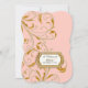NOTE: This is a flat printed image, there are no jewels, raised layers or gold metallic elements. COLOR PALETTE: blush shell pastel pink, soft creamy white with faux gold metallic glitter look DESIGN COLLECTION: Matching Couple's Rehearsal Dinner invite from the groom's parents. Inspired by Old Hollywood and her heyday glam era, this wedding invitation set is perfect for elegant, sophisticated, modern wedding celebrations. A classic, beautiful swirling leaf damask style pattern has been graphically designed to look like a silver edged gold glittery embroidered lace design with a golden buckle that has a diamond border over faux glitter. A contemporary typography layout for your invite wording and information updates this vintage retro design. A gorgeous, unique and pretty design for the most discriminating bride.