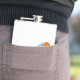 The flask itself is fine. It’s a cheap flask, obviously bought in bulk, however am prepared to overlook that. Given that it is a personalized item, I would have liked to have seen gift boxing instead of the generic packaging. Terrible printing, and/or quality. It’s a cheap, tacky vinyl. It is not cut straight and is also applied in a way that it is overhanging the bottom, causing the glue to catch on items and it will eventually roll and tear, damaging the wrap.