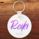 * Energy Enhanced keychain with a white background design containing an eye-catching "Reiki" with the colours magenta, pink and purple.*