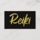 * Standard Size - Reiki Master or Reiki Practitioner Gold Glitter word REIKI on black background business card. *