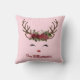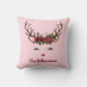 This cute pillow design features reindeer eyelashes and antlers festooned with lovely pink and burgundy roses. Your monogram name appears underneath the reindeer, but you can edit the text and add a holiday message, or remove it if you want. The design is set against a soft pink.