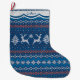 Reindeer Blue Nordic Pattern Large Christmas Stocking